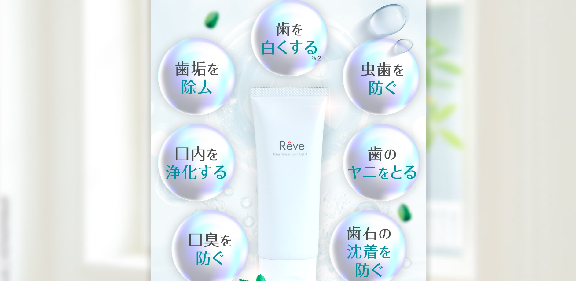 Reveの成分は、歯の表面の汚れを落としながら、歯そのものの自然な白さを引き出す働きがあります。人工的な漂白剤に頼らず、健康的で自然な白さを目指せるのが特徴です。