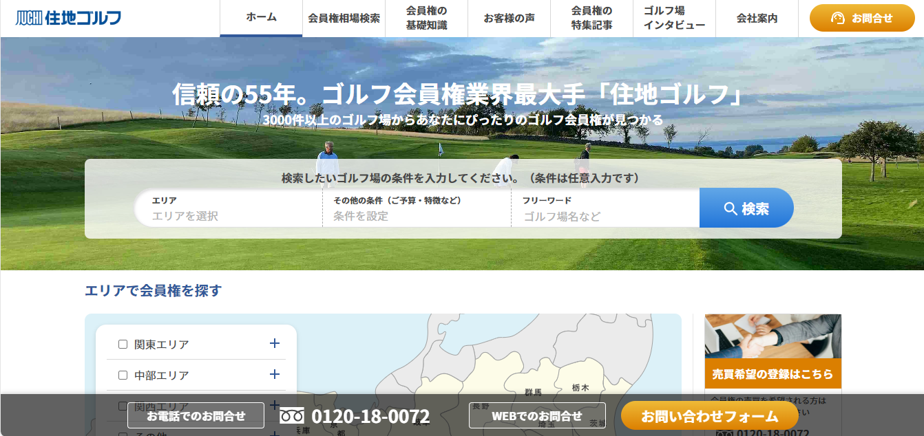 住地ゴルフは、全国のゴルフ場の会員権を取り扱う専門サービスです。購入だけでなく、売却や名義変更などもサポートしており、会員権に関するあらゆるニーズに対応しています。長年の実績と豊富な取引データをもとに、安心して会員権の売買ができる点が最大の特徴です。
