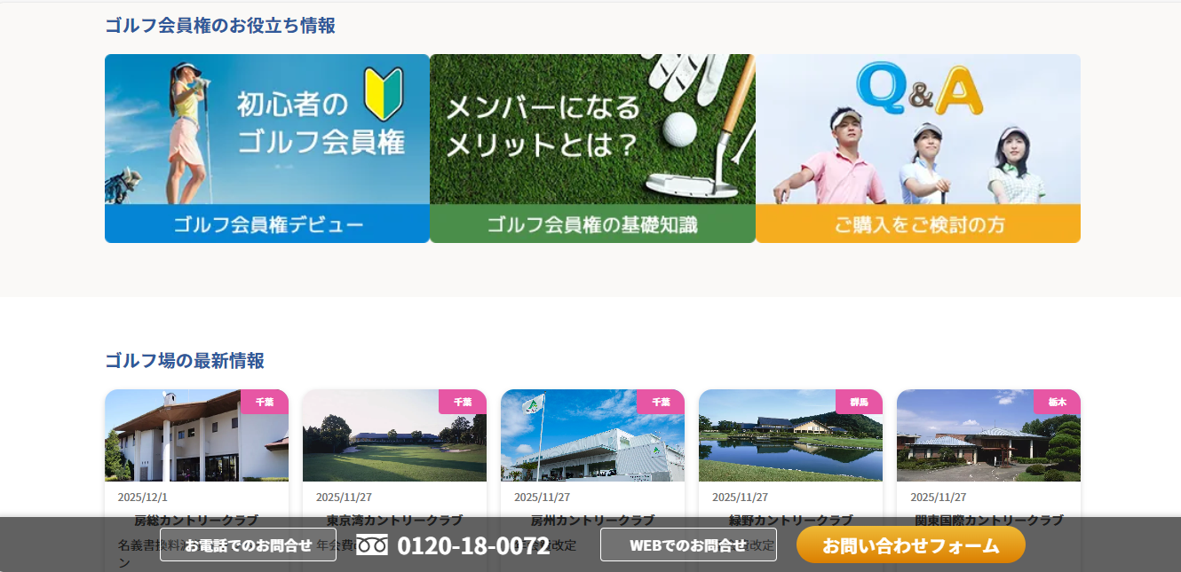 1. 全国のゴルフ場会員権を網羅
