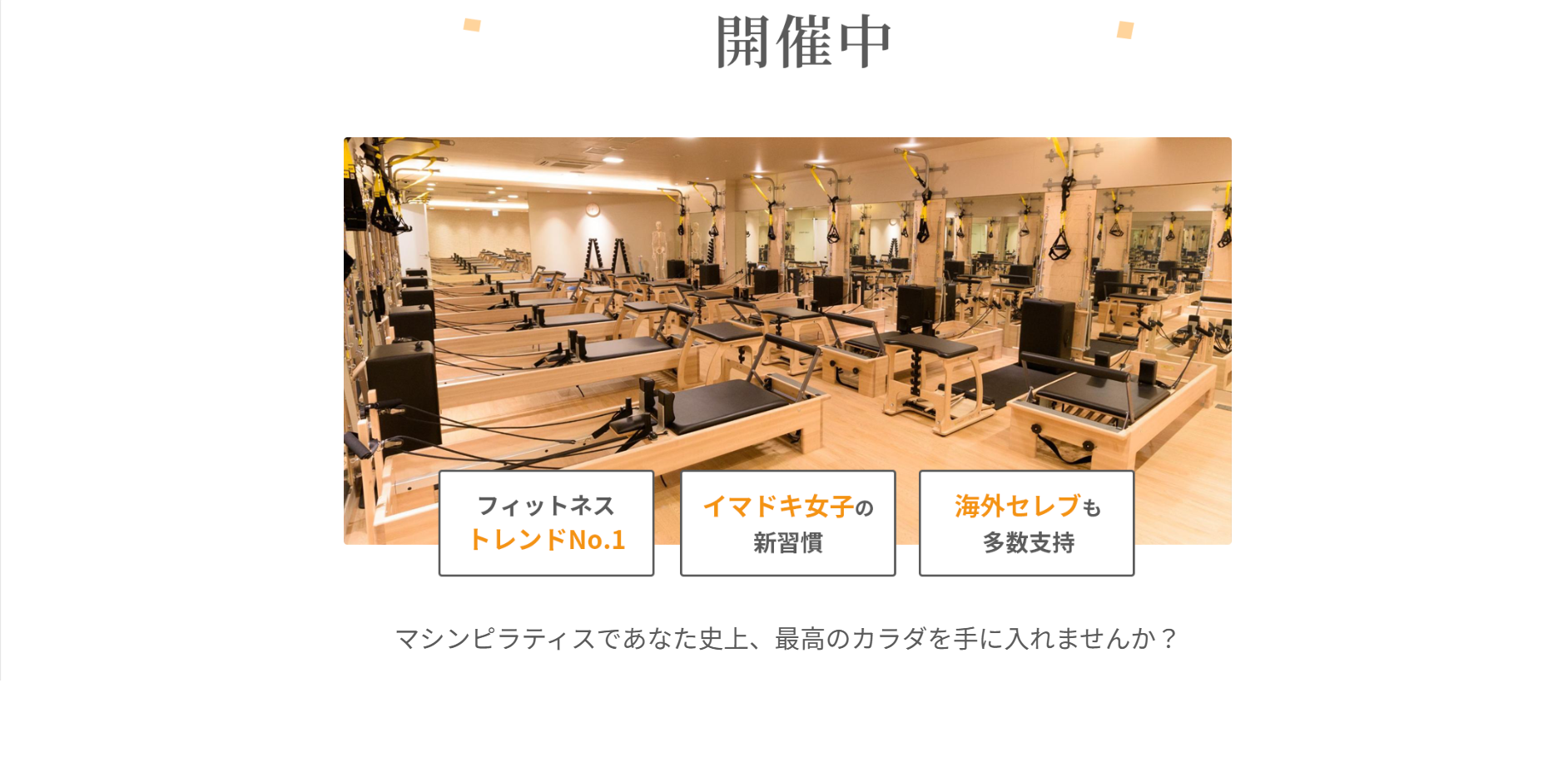 - 最新のマシン「リフォーマー」を全スタジオに完備 — 効果的にインナーマッスルを鍛えられるので、短期間で変化を実感しやすい。