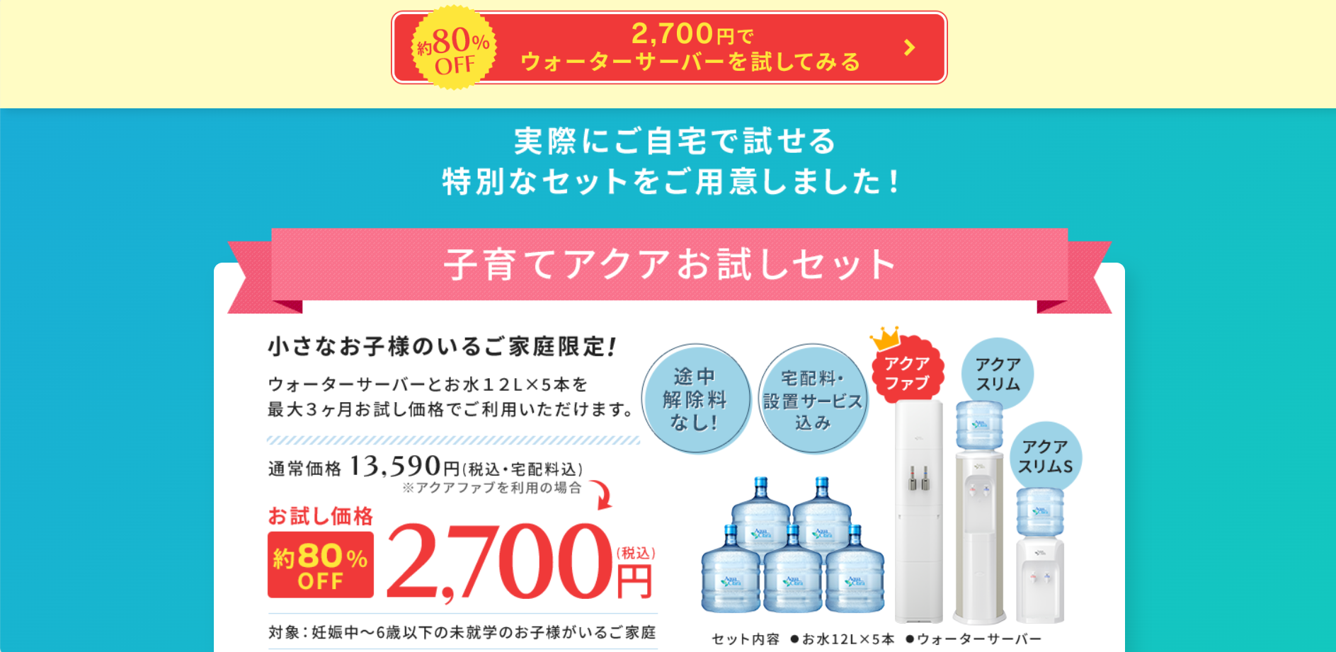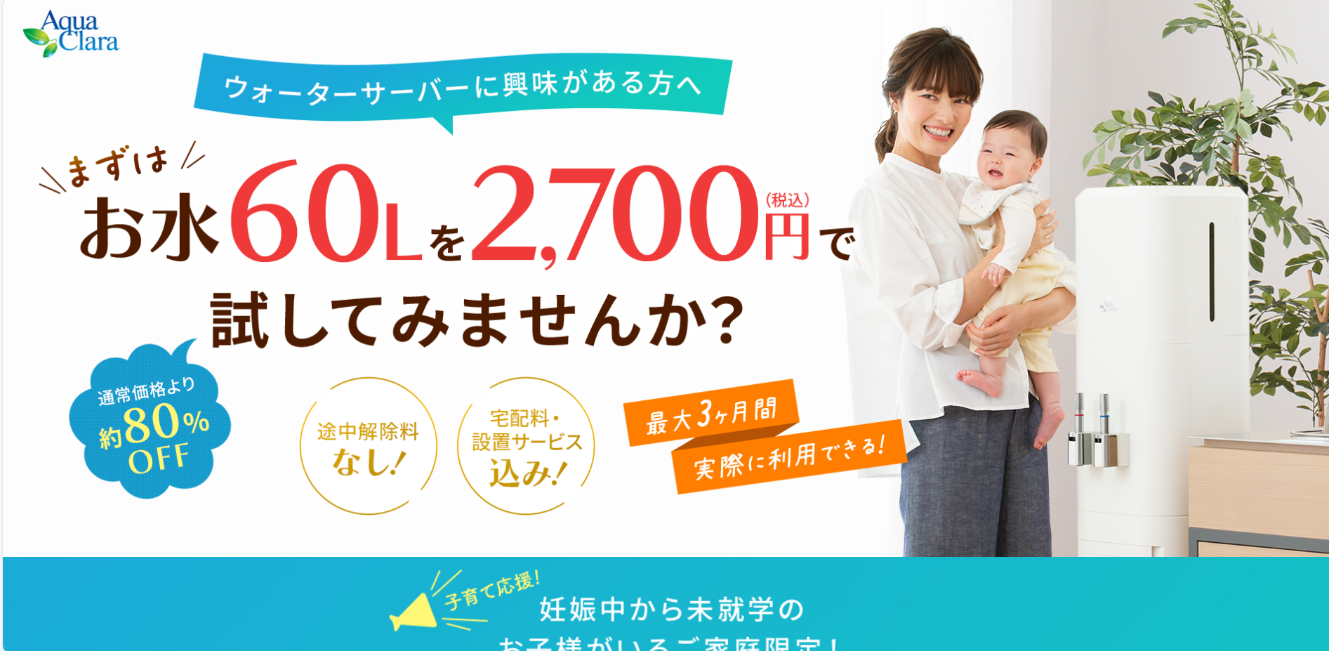 子育て家庭の味方。アクアクララ「子育てアクアお試しプラン」で毎日をラクに。