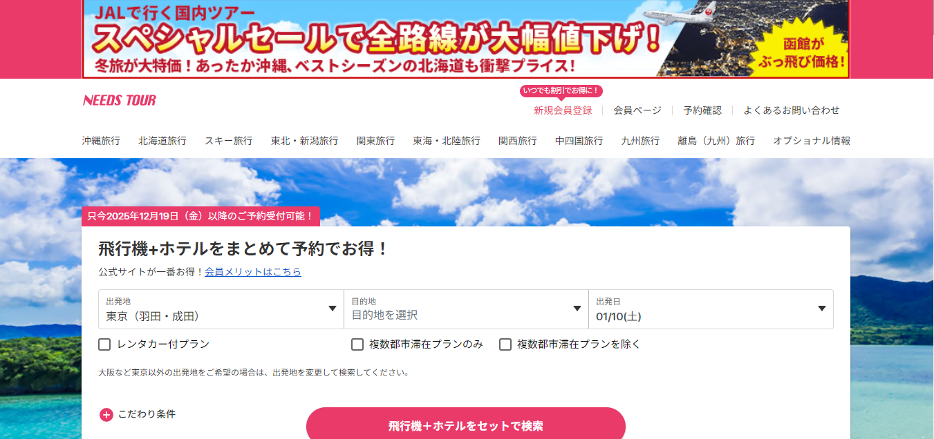 旅行の計画を立てるとき、目的地や予算、快適さ、利便性など、さまざまな要素を考慮する必要があります。そんな中で注目されているのが、ニーズツアーの国内旅行・沖縄旅行プランです。ニーズツアーは、初心者からベテラン旅行者まで、誰でも安心して利用できるサービスとして人気を集めています。ここでは、購入を検討している方に向けて、ニーズツアーの特徴・メリット・おすすめポイントを詳しくご紹介します。