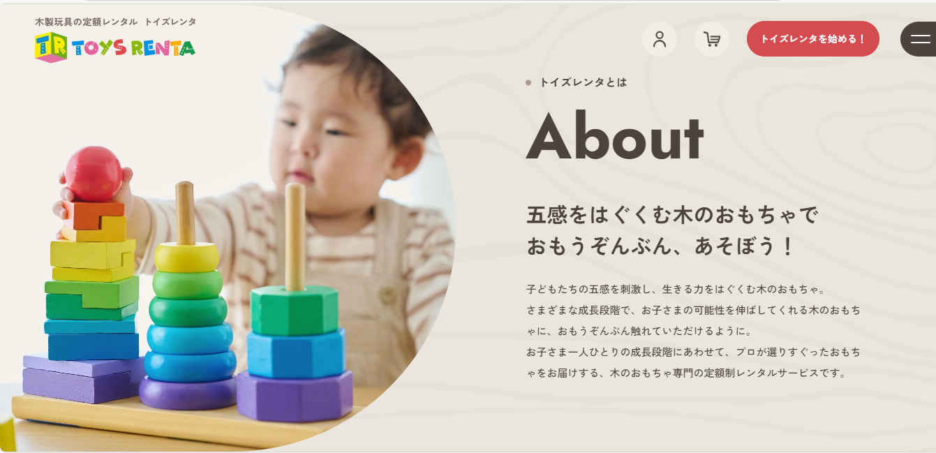 トイズレンタは、木製を中心とした知育おもちゃを定額でレンタルできるサブスクリプションサービス。