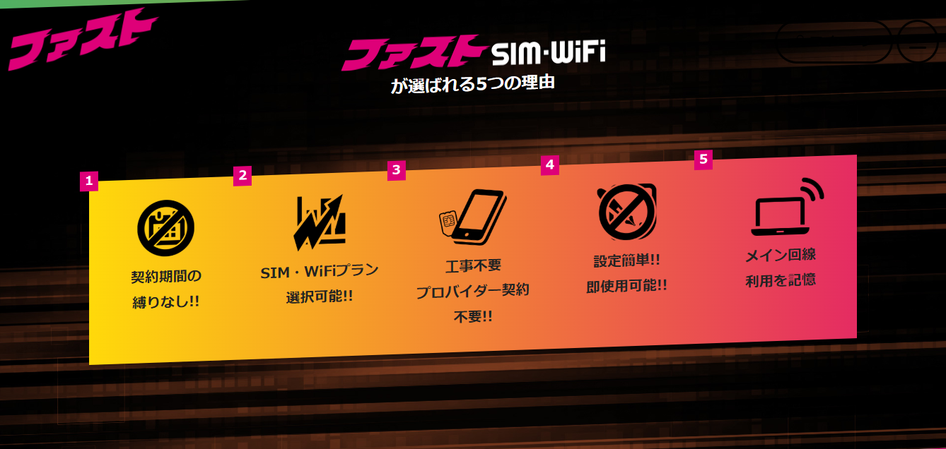 ファストSIM-WiFiは、「縛りなし」「業界最安級」「手軽に使える」という
