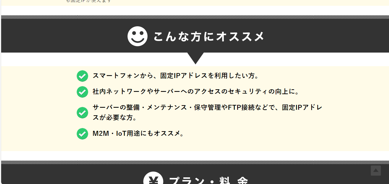 「モバイル回線でも固定IPが必要」というニッチながら重要なニーズに、的確に応えるSIMと言えるでしょう。