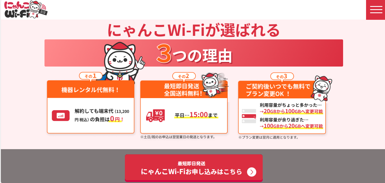 にゃんこWi-Fiは、手軽さと料金の安さから、