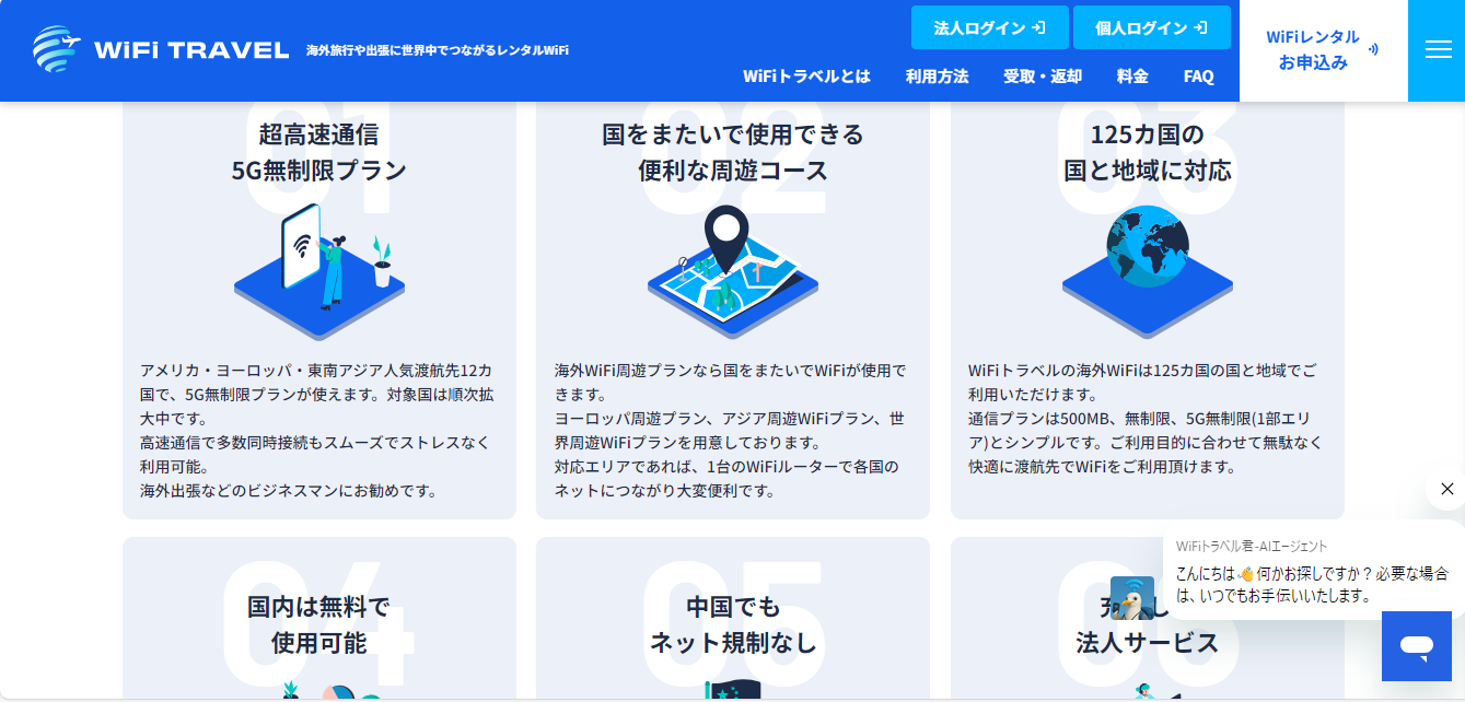 旅行者や出張者にとって便利な機能を兼ね備えた海外WiFiレンタルサービスです。