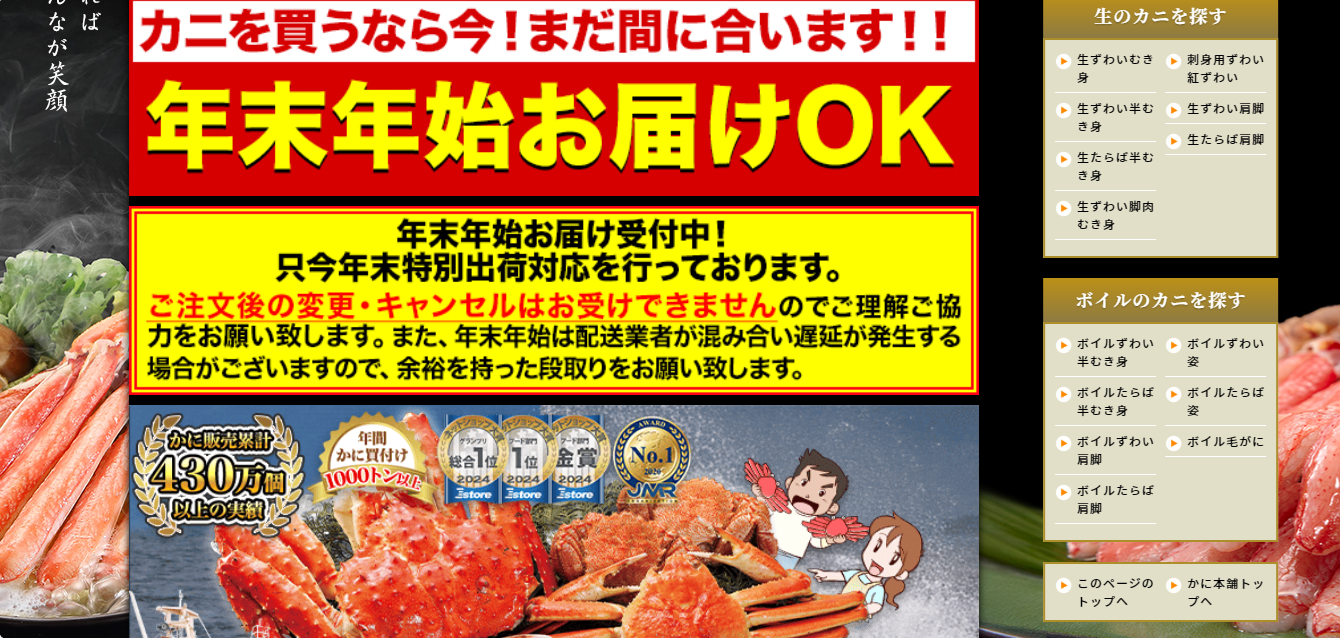 カニ通販売上日本一!?と話題になるのも納得の【かに本舗】。