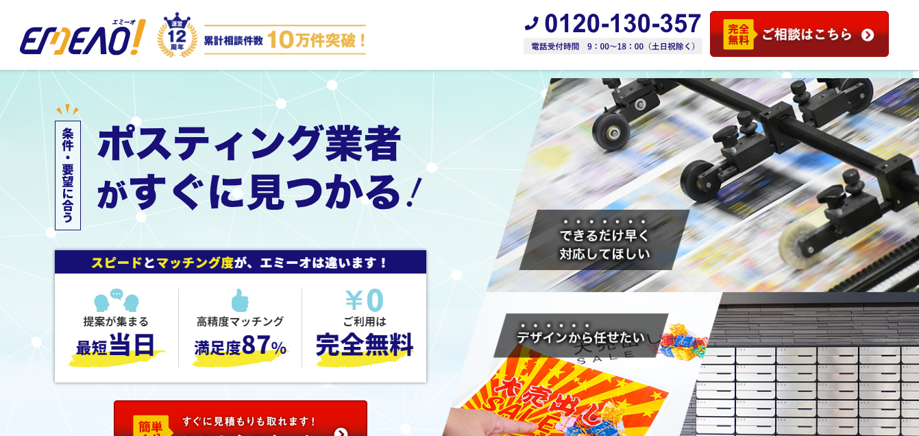 そんな悩みを持つ企業や店舗の担当者に選ばれているのが、ポスティング会社ご紹介サービス【EMEAO!】です。