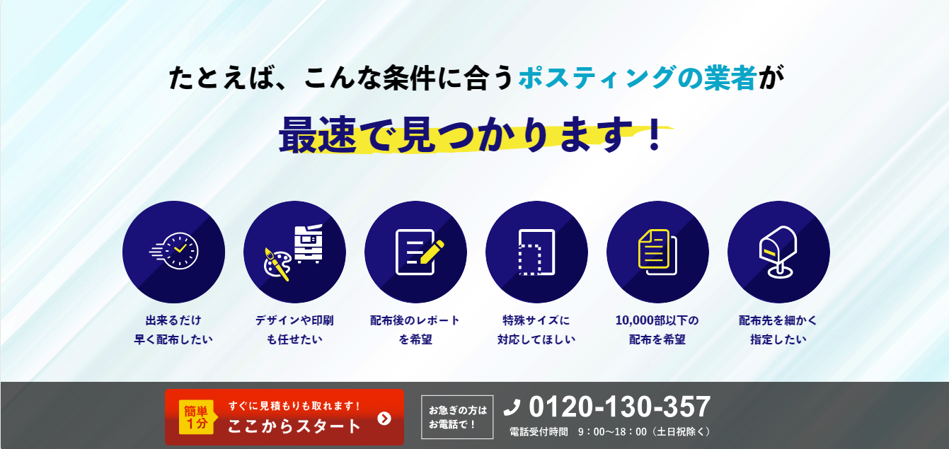 ポスティングが初めての企業でも利用しやすい仕組みが整っています。