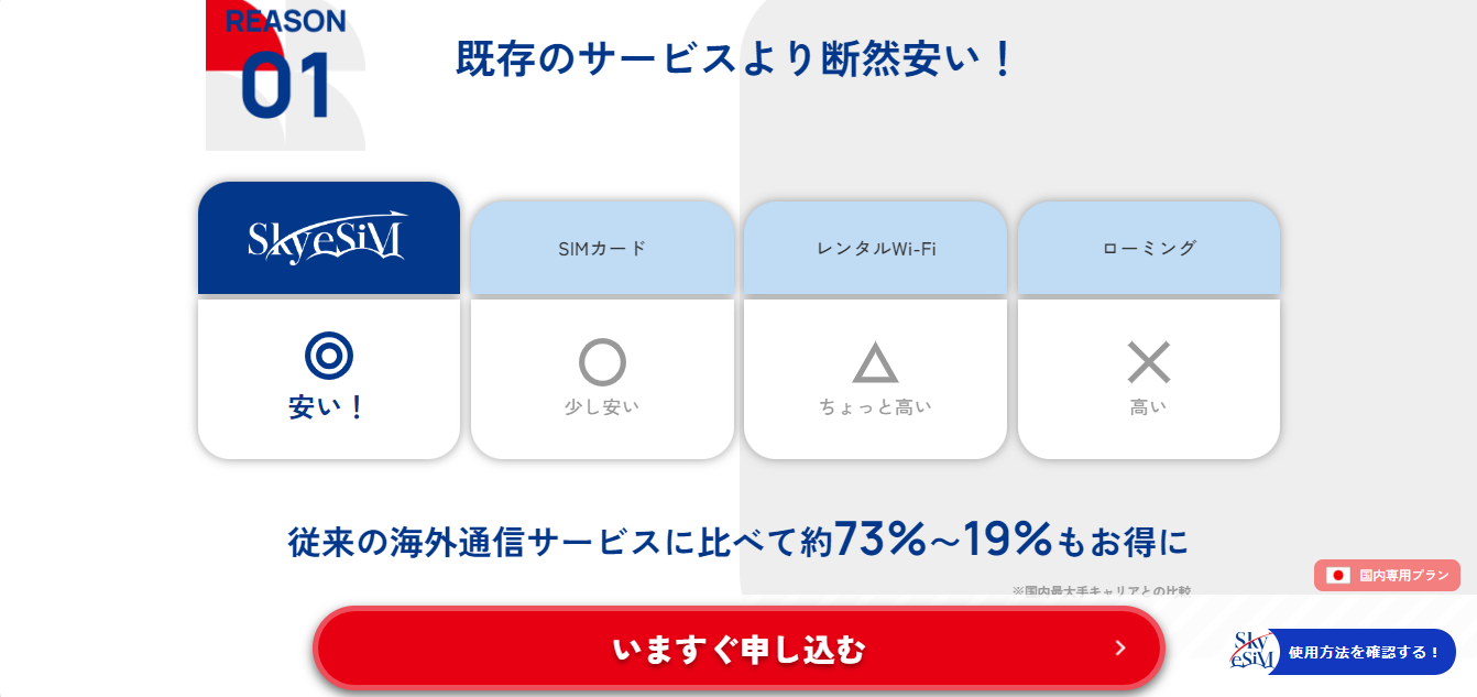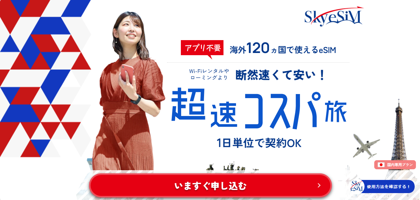 そんなニーズに応えるのが、1日単位で契約できる【SkyeSiM(スカイイーシム)】です。
