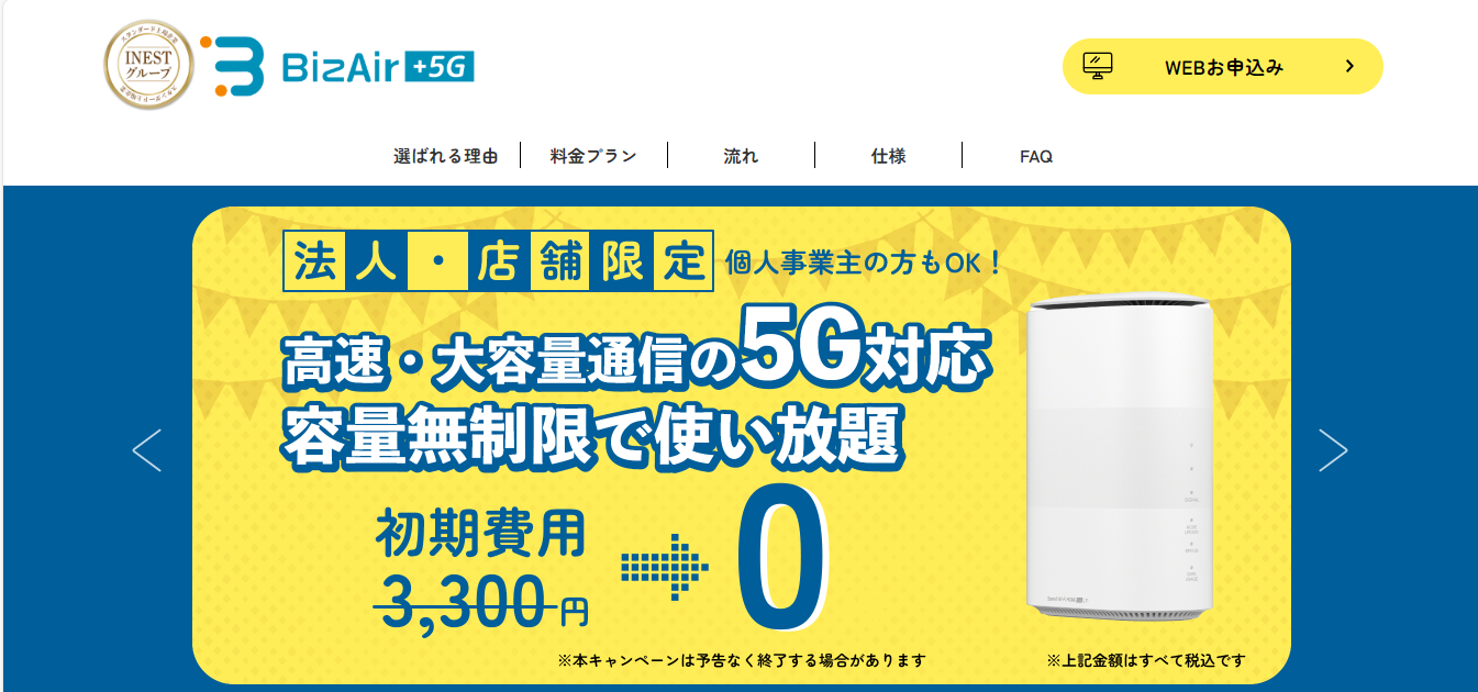 工事不要ですぐ使える!法人・店舗に最適な5G対応Wi-Fi「BizAir(ビズエアー)」徹底解説