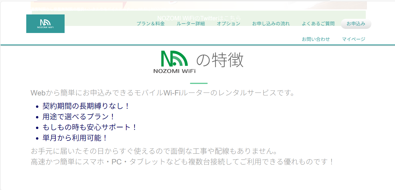 NOZOMI WiFiの7つの特徴