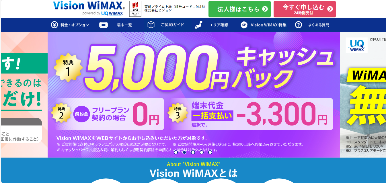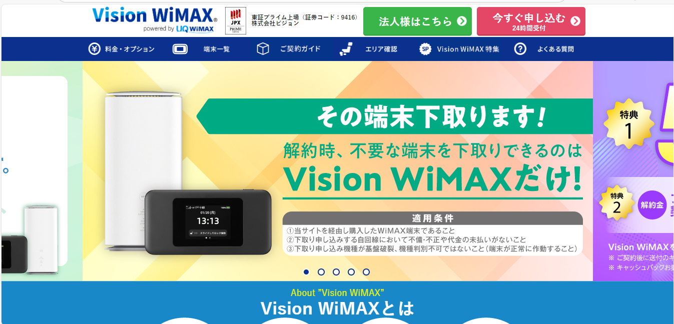 VisionWiMAXは、最短翌日から利用可能なWi-Fiモバイルルーターサービスです。