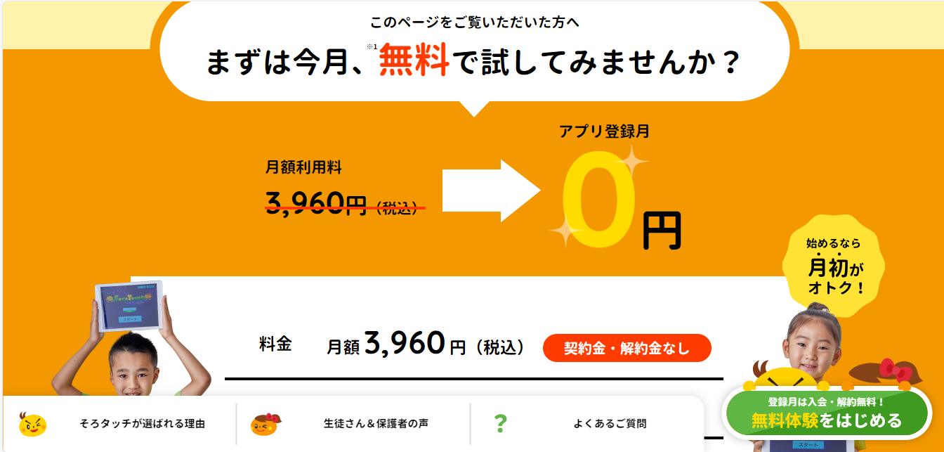 無料体験:まずは無料でステージ1を試すことができます。子どもが楽しめるか、続けられそうかを確認してから有料会員になれるので安心です。