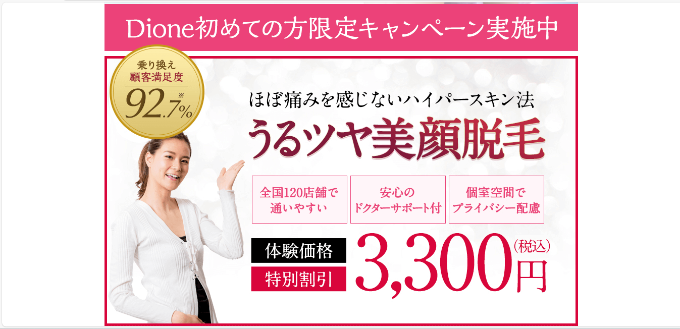 脱毛サロンDione(ディオーネ)は、敏感肌専門という明確なコンセプトのもと、顔脱毛に不安を感じている方に寄り添ったサービスを提供しています。
