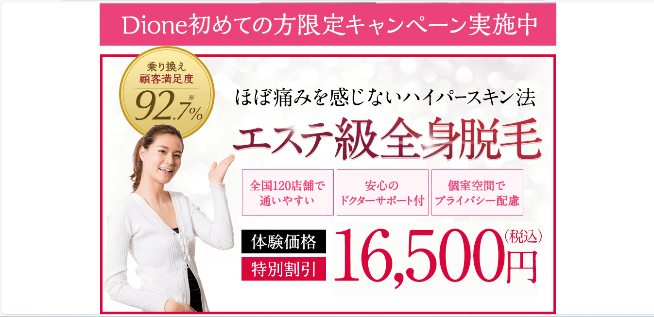 敏感肌専門 脱毛サロンDione(ディオーネ)の全身脱毛は、