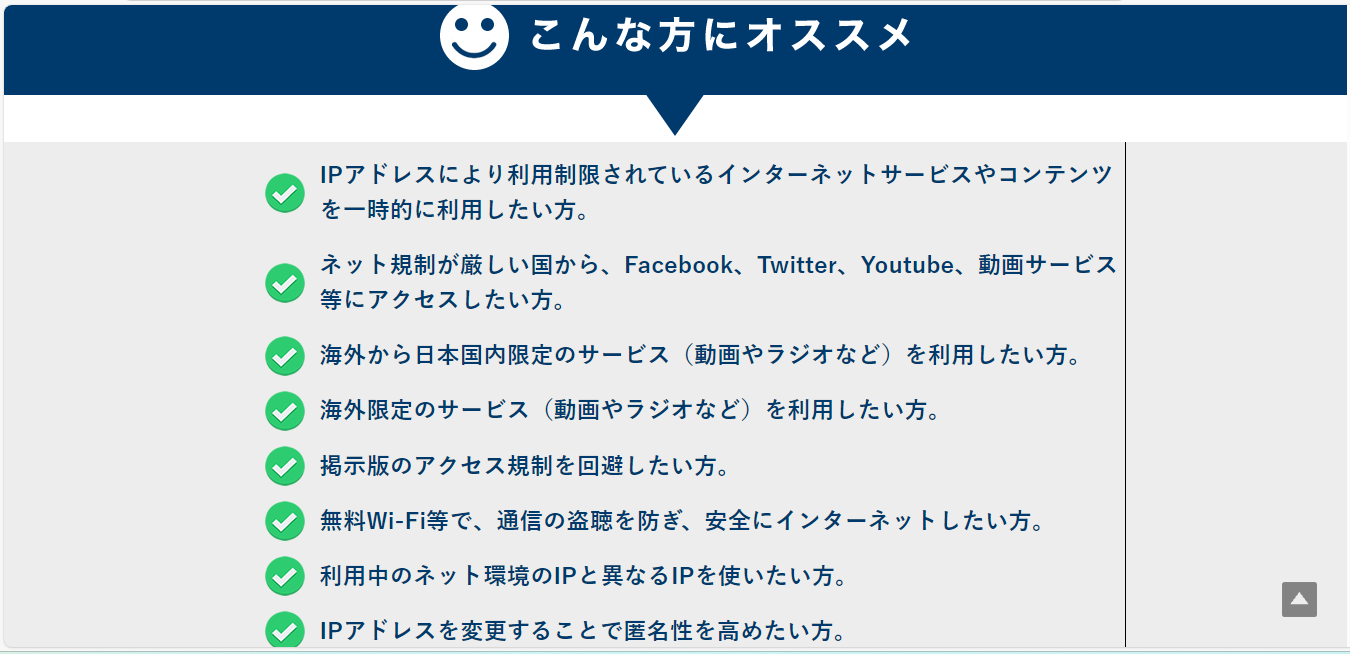 • 海外から日本の動画やSNSにアクセスしたい