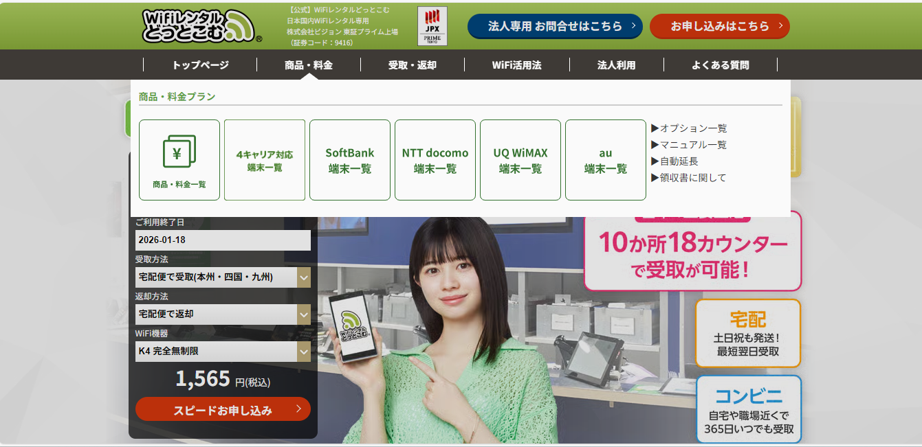 「WiFiレンタルどっとこむ」の申込は公式サイトから簡単に行えます。