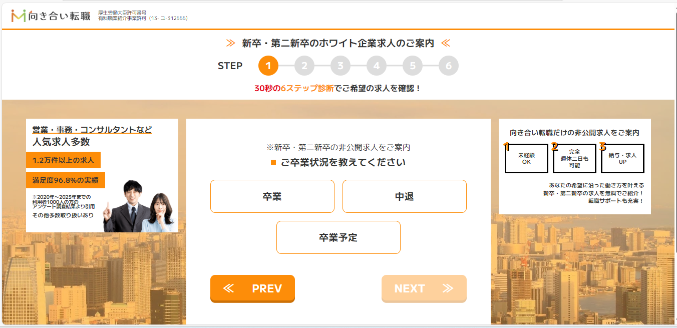「向き合い転職」は、オンラインで効率的かつ丁寧に転職活動を進めたい方に最適なサービスです。初回面談を通じてキャリアの方向性を明確化し、専任アドバイザーによる個別サポートで自分に合った求人を紹介してもらえます。