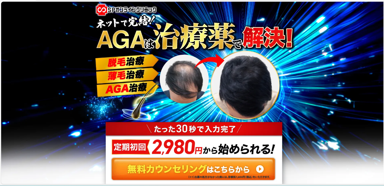AGA治療【SPオンラインクリニック】は、薄毛や抜け毛に悩む男性のためのオンライン完結型AGA治療サービスです。