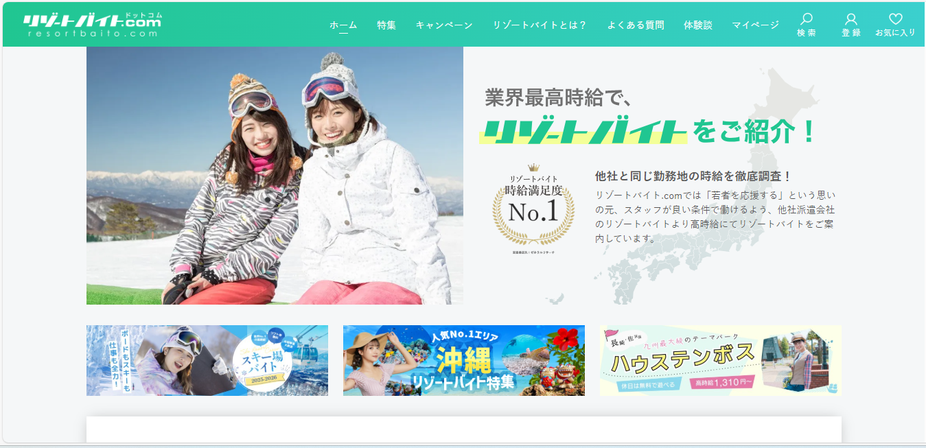 業界No.1クラスの高時給・高待遇を誇るリゾートバイト.comは