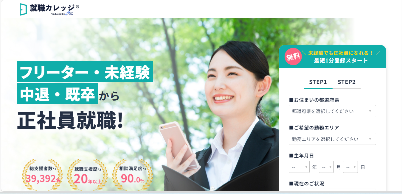 就職カレッジ®は、フリーター・未経験・中退・既卒の方を対象にした就職支援サービスです。