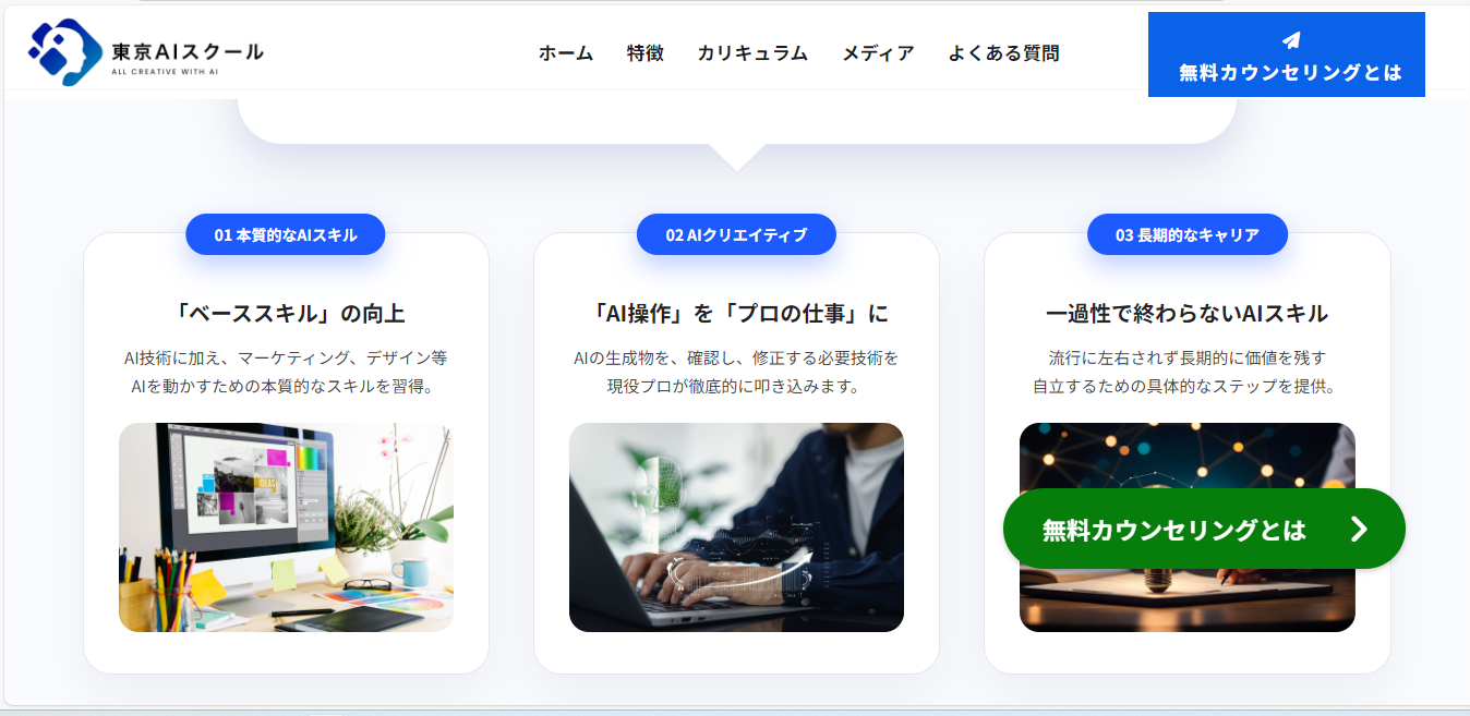 東京AIスクールは、「仕事で使えるAIスキル」を最短距離で身につけることを目的とした、社会人向けの実践型AIスクールです。