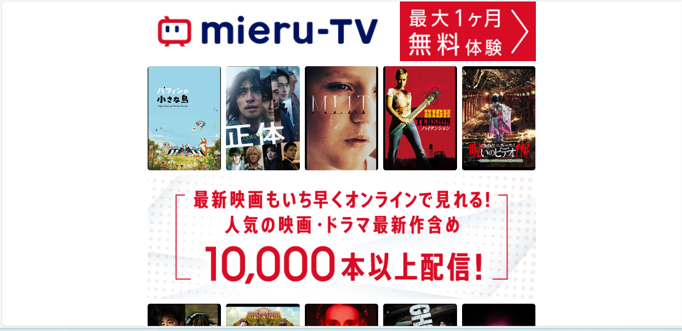 mieru-TVは月額サービスとして、映画やドラマ、アニメなどの作品を楽しめる動画配信サービスです。約10,000本以上の作品数や月額料金に応じたポイント付与、初月無料特典など、利用者にとってうれしい特徴が多くあります。これから動画サービスを検討する方にとって、リーズナブルな価格で幅広いジャンルの作品を楽しめる選択肢としておすすめできるサービスです。自分だけの視聴スタイルを見つけて、好きな作品を思い切り楽しんでみてください。