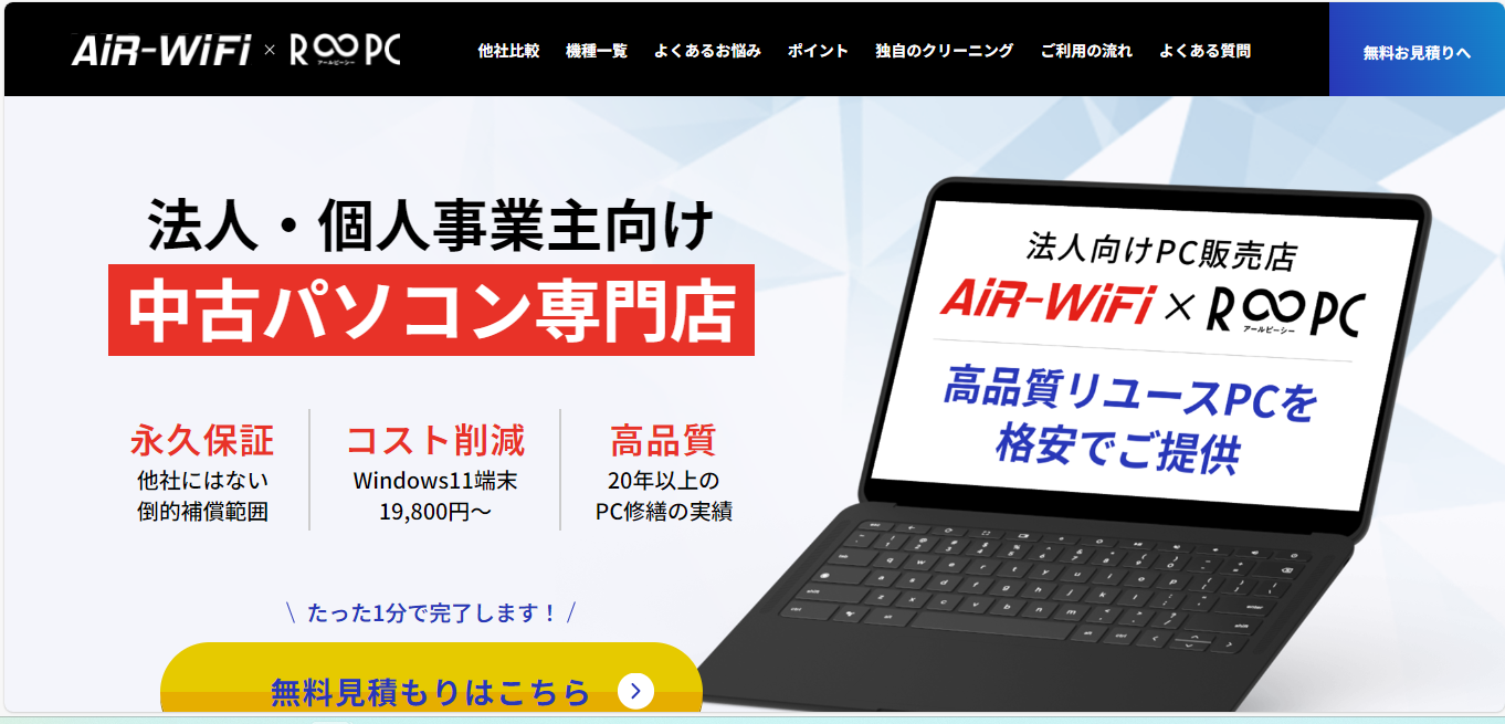 アールピーシーは、法人向けに高品質なリユースPCを格安で提供するサービスです。