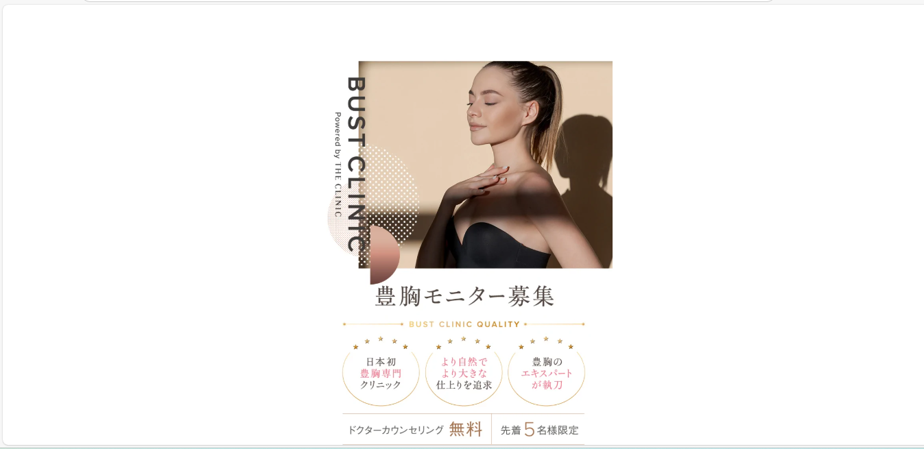 「バストのハリやボリュームを取り戻したい」「自信のあるバストラインを手に入れたい」そんな女性には、ぜひ一度BUST CLINICを試してみることをおすすめします。あなたも理想のバストを手に入れ、自信あふれる毎日を手に入れましょう。